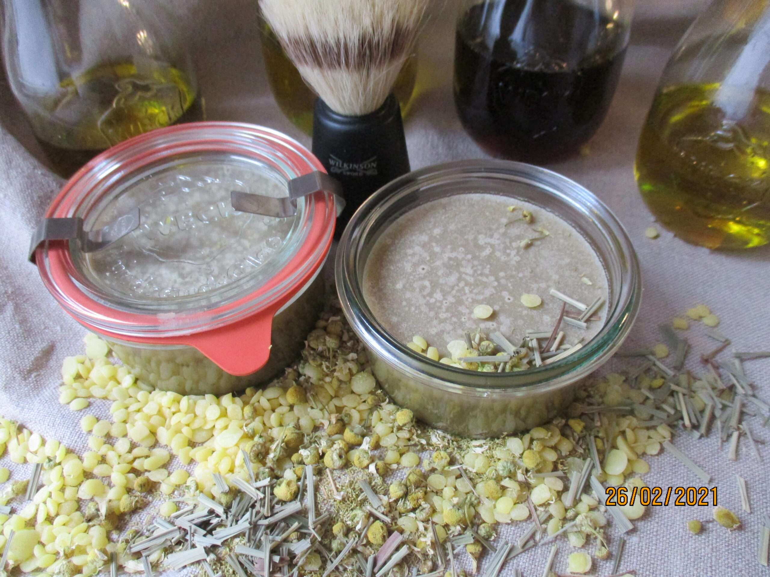Eine handgemachte Rasierseife für den Mann. Im pracktischen Weckglas mit Pinsel zu benutzen.