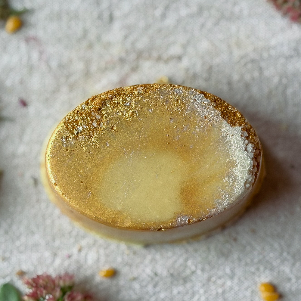 Inhaltstoffe: Olivenöl, Kokosfett, Ottensteiner Rapsöl, Bienewachs, Kamillentee, NaoH, Honig, Bad Karlshafener Solesalz, Perfum,äth.Öl