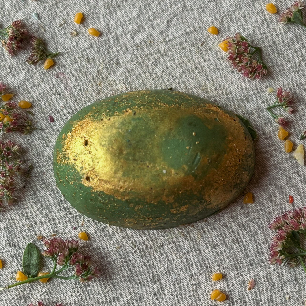 Inhaltstoffe: Olivenöl, Kokosfett, Rapsöl, Bienenwachs, Kamillenwirkungsöl, Arnicaöl, Sheabutter, NaoH, Kamillentee, Kräuter, äth.Öle Mischung