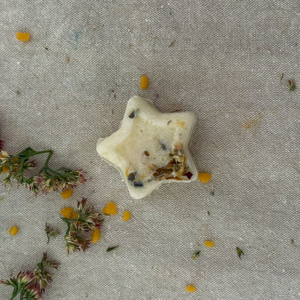 Salz hilft der Haut die Feuchtigkeit besser zu speichern und pflegende Öle und Fette wie Kakaobutter, Sheabutter und Mandelöl legen sich sanft auf die Haut.Eine ätherische Öle Mischung aus wohltuenden Kräutern soll bei der Gesundung helfen.
