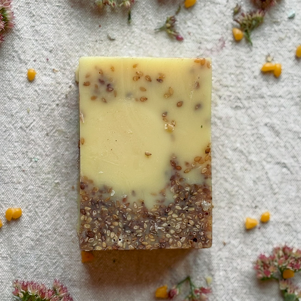 Inhaltstoffe: Kokosöl; Olivenöl; Rapsöl aus der Ottensteiner Ölmühle; Sesamöl; Sheabutter; NaoH; Wasser; Sesam ;C.I. 77007