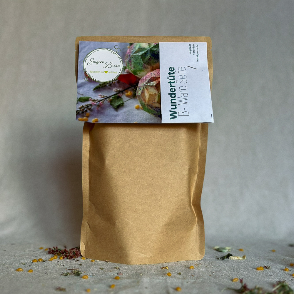Eine kleine Wundertüte entsteht. 5 verschiedene B-Ware Seifen lassen eine Tüte voller Pflege entstehen.
